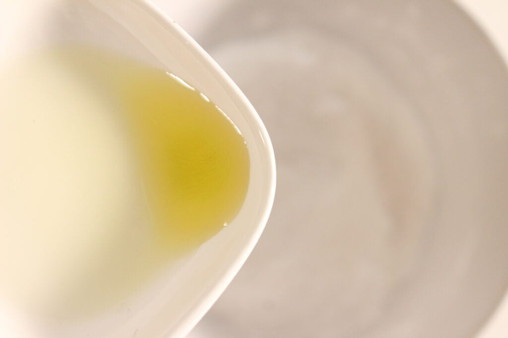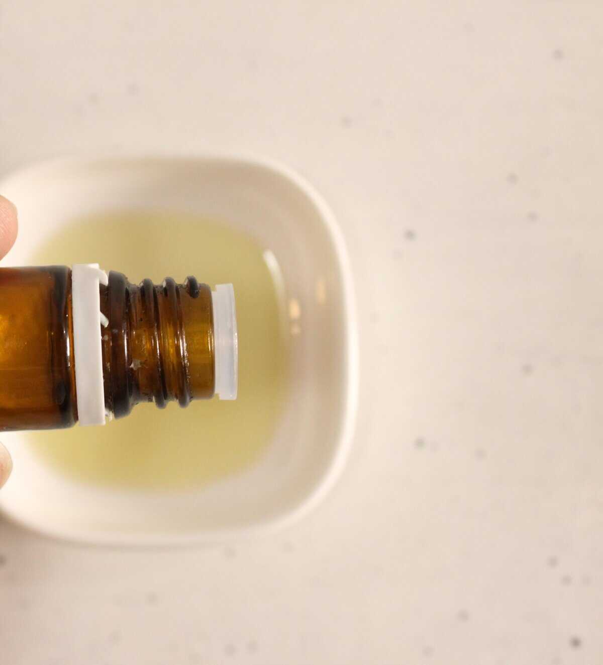 In a small bowl, combine the almond oil and your essential oils. Give it a little stir so it’s nicely blended.