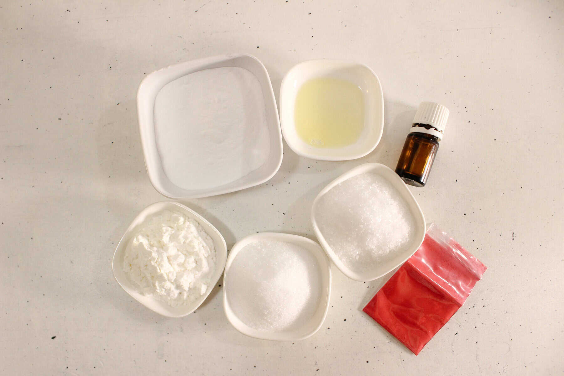 - In a large bowl, mix the baking soda, citric acid, Epsom salt, and corn starch.