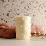 Once firm, gently remove your candle from the mold and trim the wick to about 1/4 inch. That’s it your cozy Snowflake Candle is ready to light!