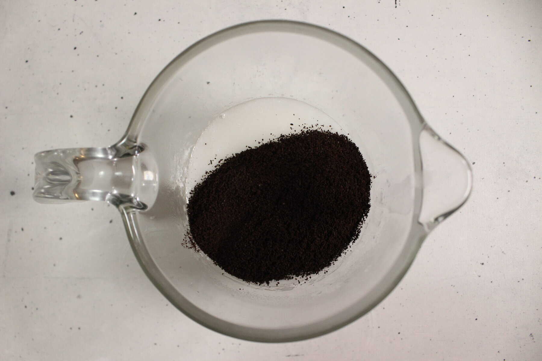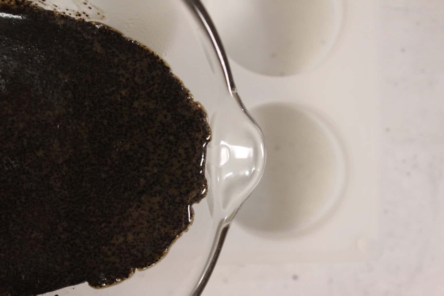 Once melted, stir in the ground coffee until evenly distributed throughout the soap base.