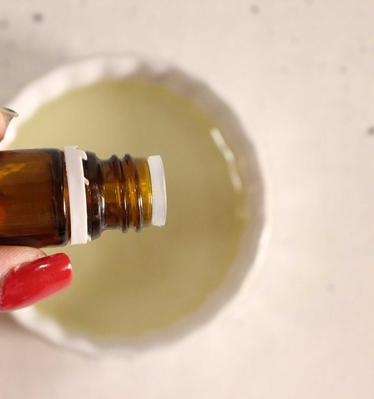 Add the essential oils to the infused oil and stir well to combine. This helps evenly distribute the scent throughout the scrub.