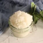 If you love easy, natural body care recipes that actually work like me this sea salt scrub is one you’ll want to make on repeat. It’s one of those back-to-basics recipes with minimal ingredients, quick to make, and incredibly effective at exfoliating and smoothing your skin.