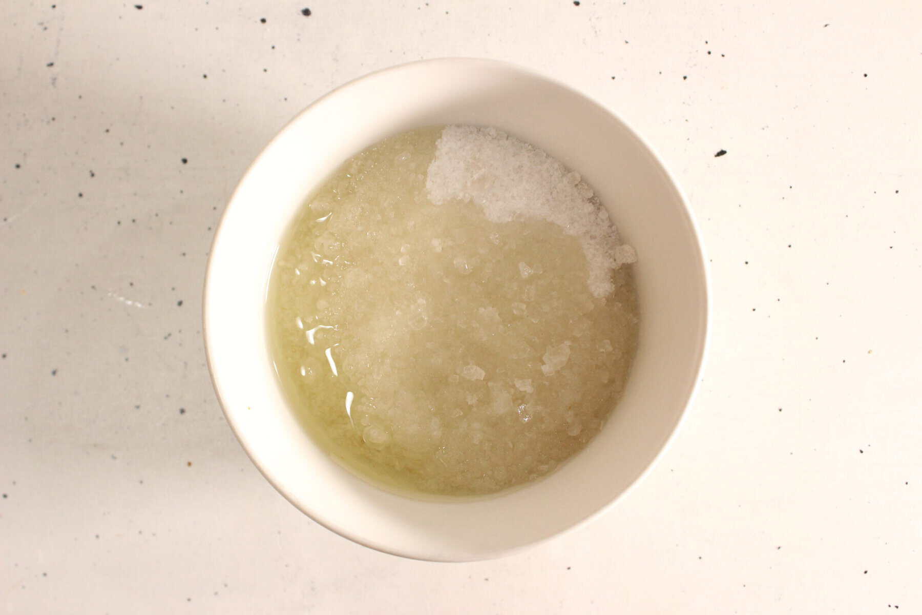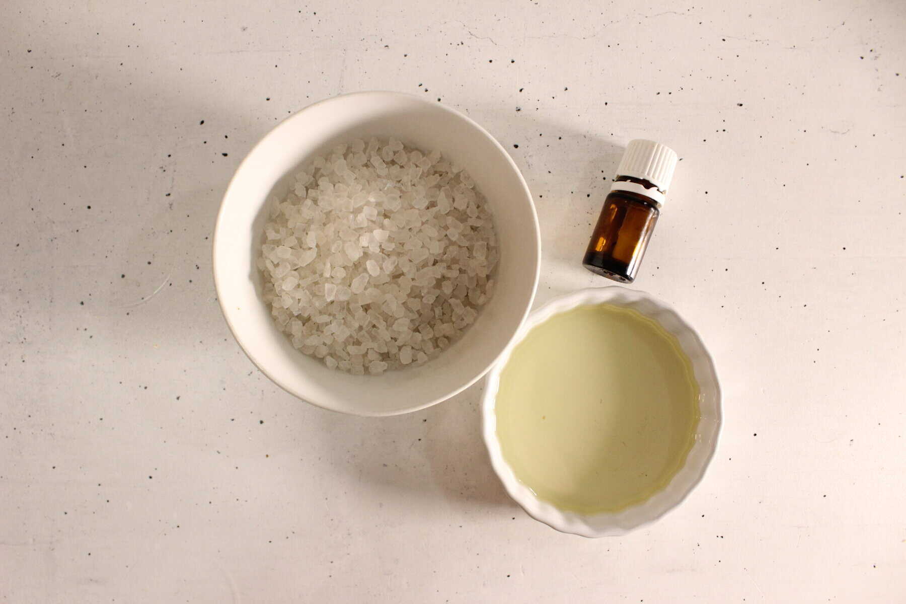 - In a bowl, combine the ground salt with the oil mixture and mix until the scrub is evenly coated.