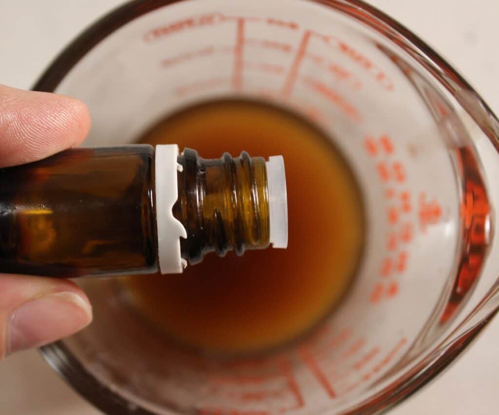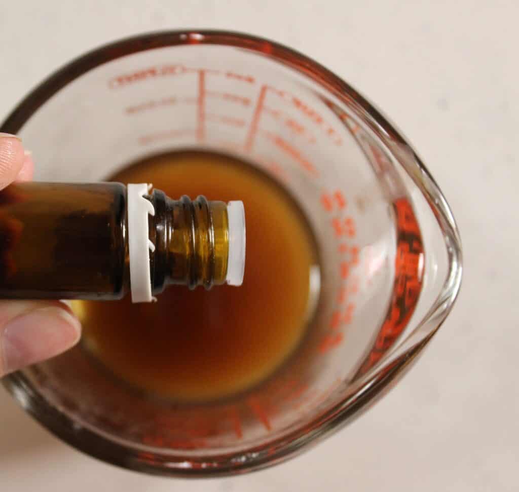 - Stir in the vanilla essential oil and sweet orange essential oil until well blended.