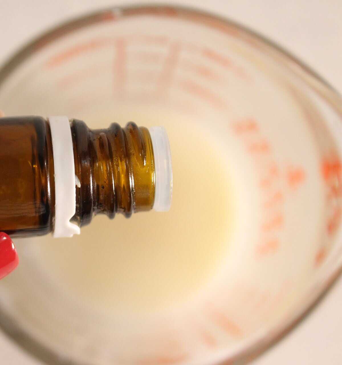 3. Add the essential oils (if using) and mix gently.